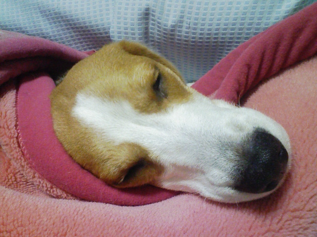 人間の毛布にくるまれてお昼寝してました。